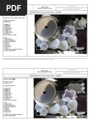 The waiter sets up the meal and covers on the trolley and wheels it into the guest s room.